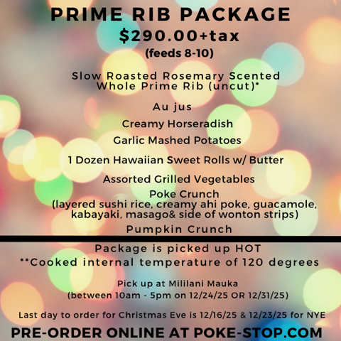 ***DELIVERY AVAILABLE ON A LIMITED BASIS ON THURSDAY 12/25/25 BETWEEN 10:00AM - 3:00PM. DELIVERY AREAS INCLUDE: WAHIAWA, MILILANI, WAIPIO GENTRY, WAIKELE, EWA BEACH, KUNIA, KAPOLEI, PEARL CITY, AIEA, SALT LAKE, & MOANALUA. DELIVERY FEE IS $45. INQUIRE IN THE MESSAGE FIELD BELOW FOR AVAILABILITY***